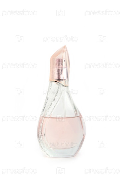 Флакон розовых духов, изолированный на белом