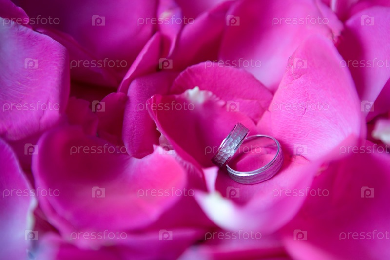 Обручальные кольца на лепестках роз