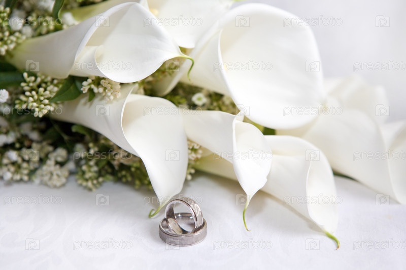 Обручальные кольца с букетом калл