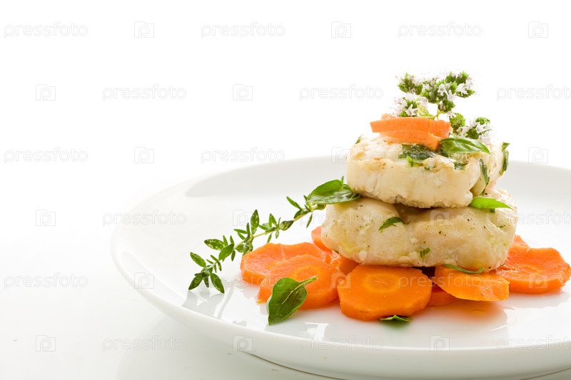 Треска на моркови со свежим орегано и базиликом