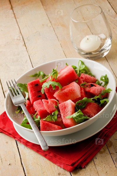 Салат с арбузом и руколой