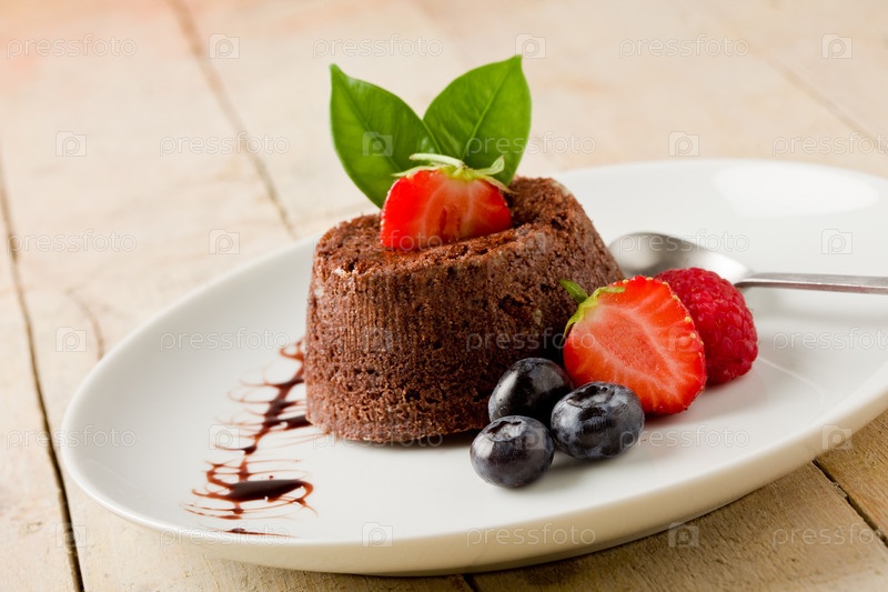 Шоколадный десерт с ягодами