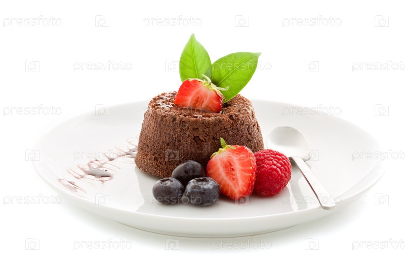 Шоколадный десерт с ягодами, изолированный