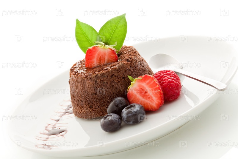 Шоколадный десерт с ягодами, изолированный