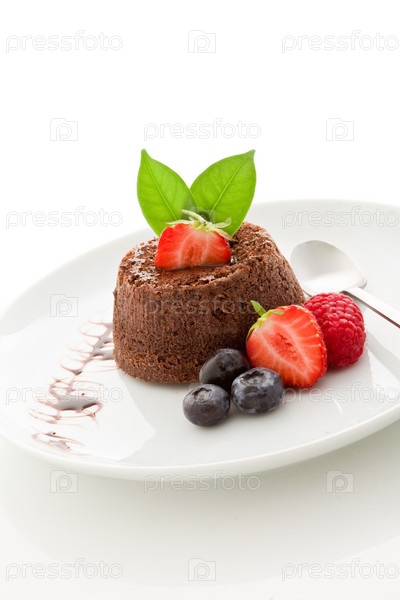 Шоколадный десерт с ягодами, изолированный