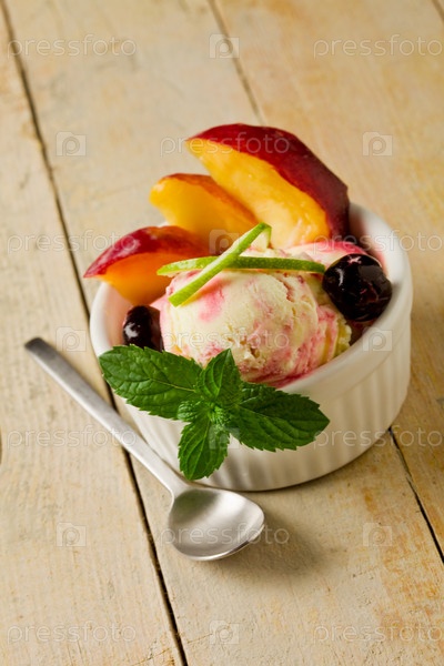 Шарик мороженого с фруктами