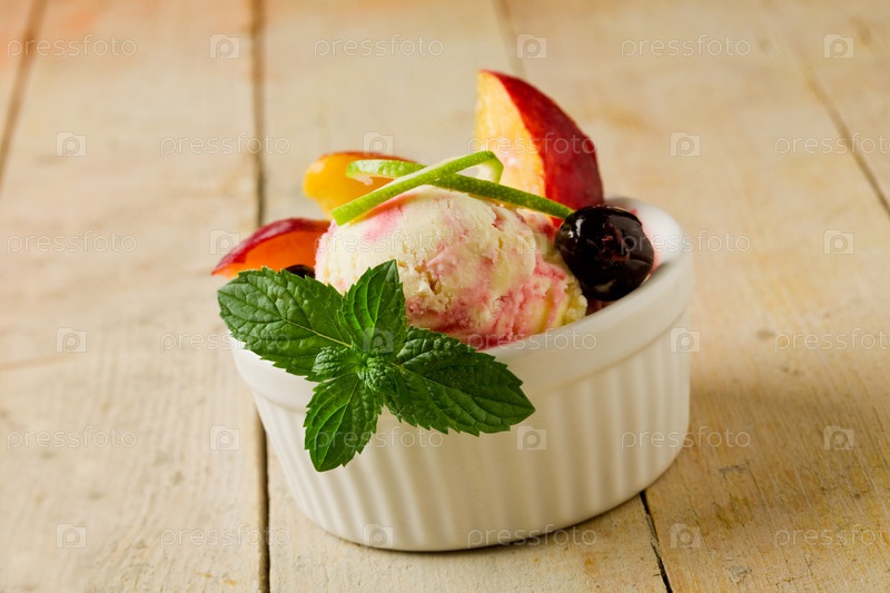 Шарик мороженого с фруктами