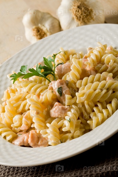 Макароны с лососем и сливками