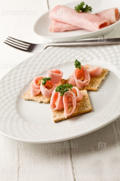 Канапе с крекерами, ветчиной и петрушкой