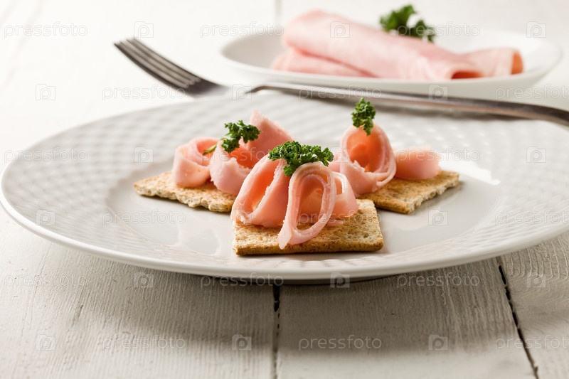 Канапе с крекерами, ветчиной и петрушкой