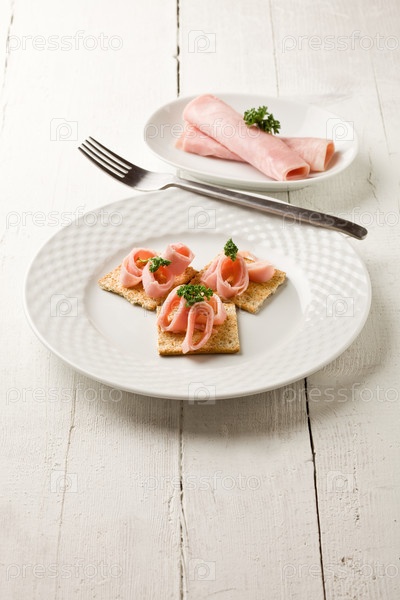 Канапе с крекерами, ветчиной и петрушкой