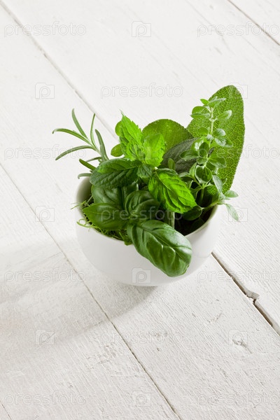 Травы на белом деревянном столе