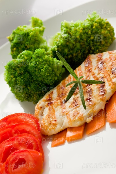 Жареная куриная грудка с овощами