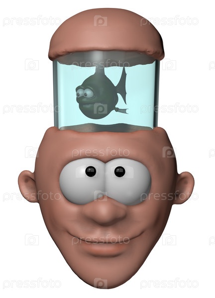 Человек с аквариумом в голове, 3d