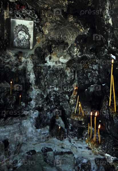 Икона и свечи в гроте