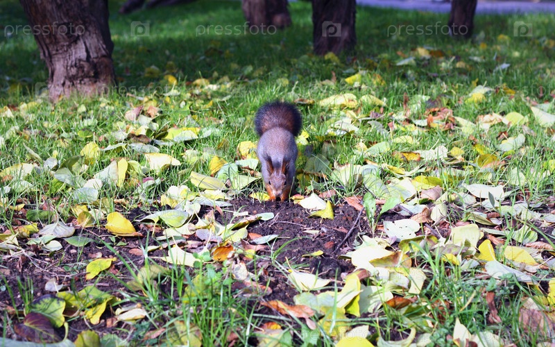 Белка закапывает орехи