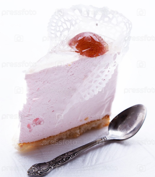 Сладкий аппетитный фруктовый тортик на белом фоне