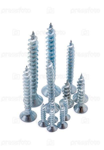 Несколько шурупов разной длины на белом фоне