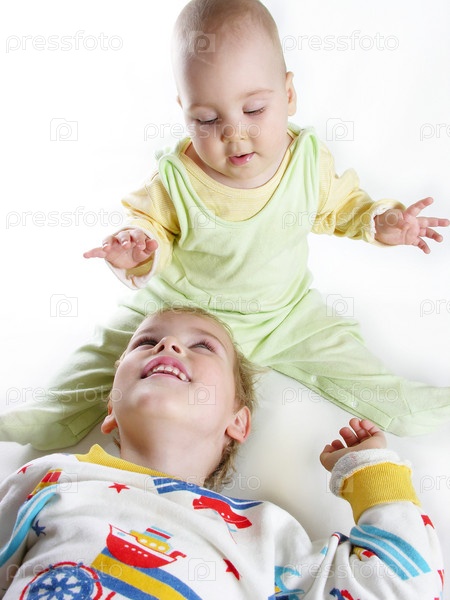 Ребенок с ребенком на белом