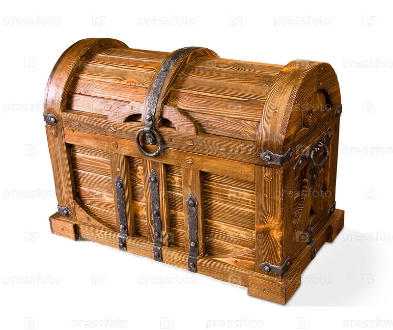 Деревянный сундук на белом фоне, изолировано