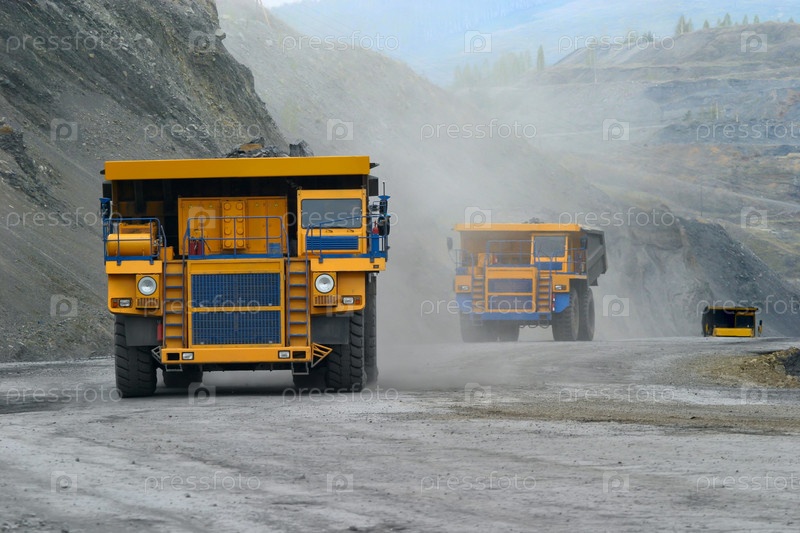 Большой желтый карьерный самосвал на рабочем месте