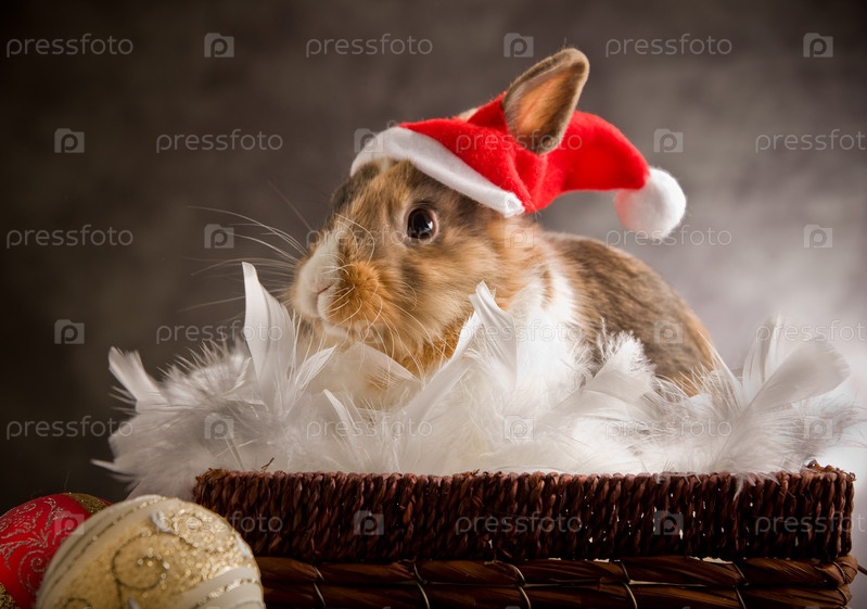 Карликовый кролик в костюме Санта-Клауса