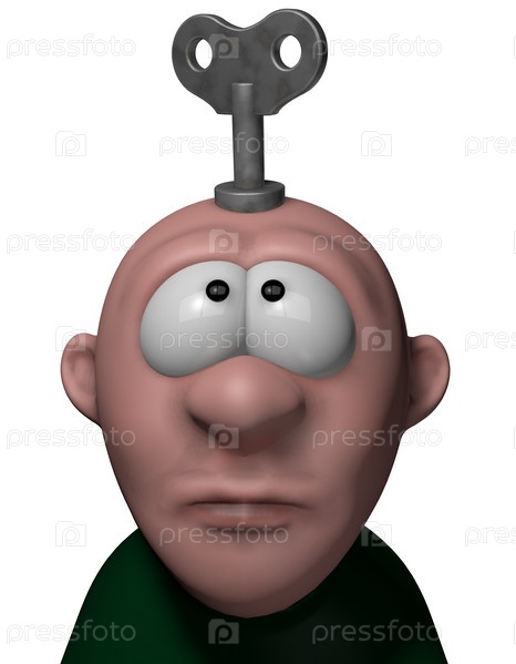 Мультипликационный персонаж с ключом в голове - 3d иллюстрация