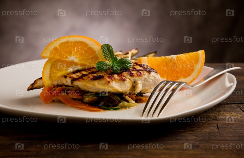 Жареная куриная грудка на рататуе
