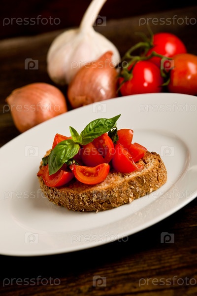 Закуска брускетта со свежими томатами