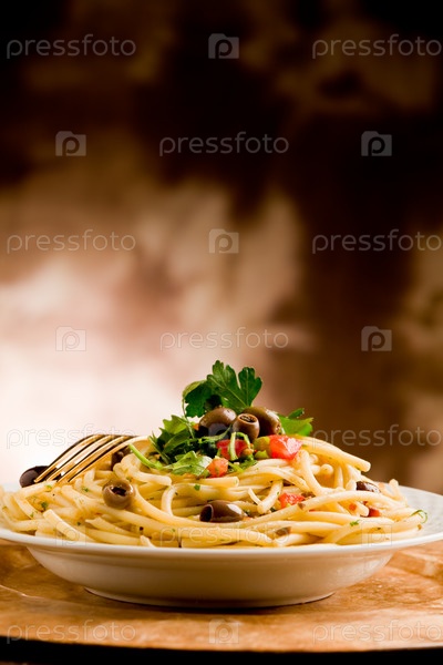 Макароны с оливками и петрушкой