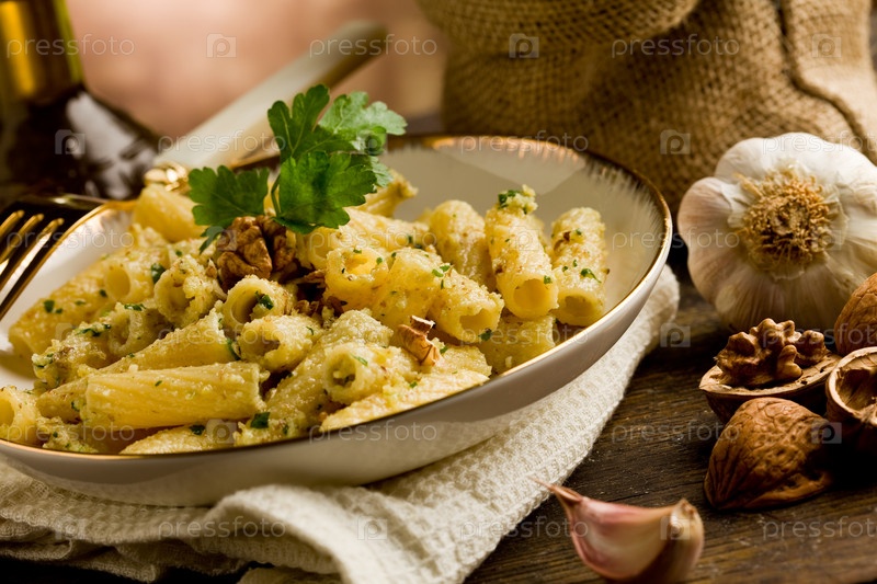 Макароны с ореховым соусом песто
