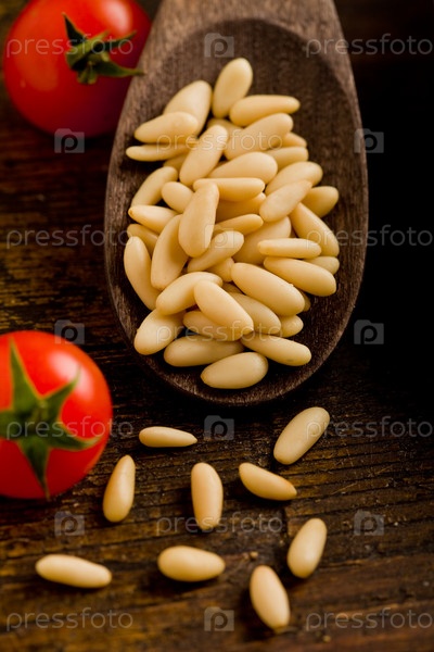 Кедровые орехи в деревянной ложке