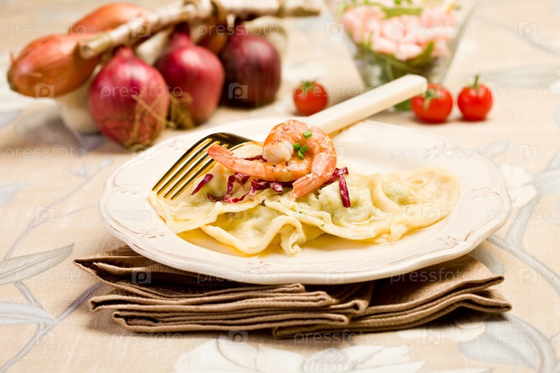 Домашние равиоли с креветками