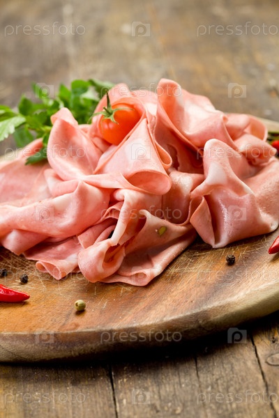 Ломтики мортаделлы с красным перцем
