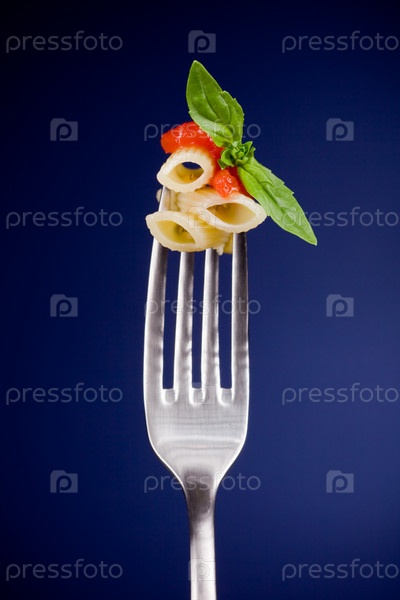Вилка с макароннами и томатным соусом
