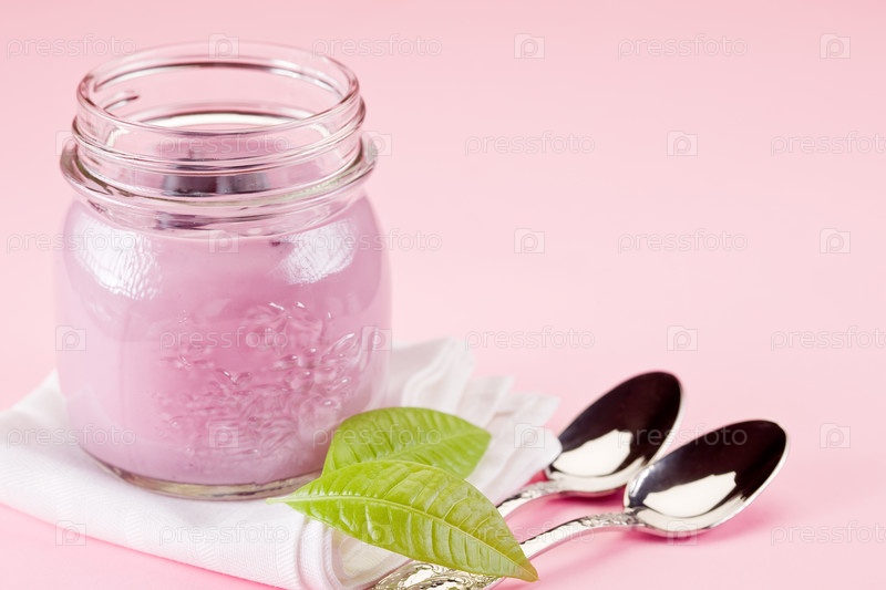 Йогурт на розовом фоне