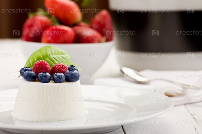 Панна котта с ягодами на белом столе