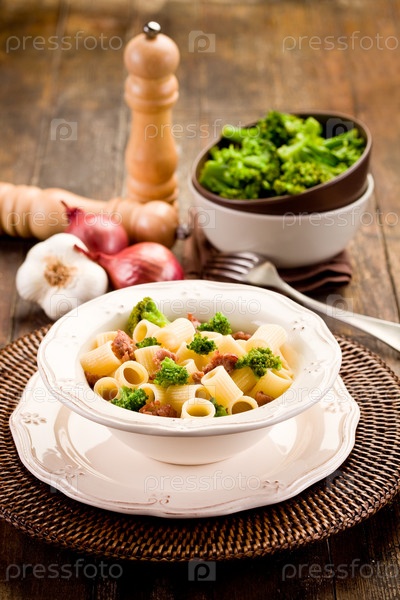 Макароны с колбасой и брокколи