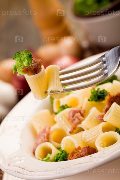 Макароны с колбасой и брокколи