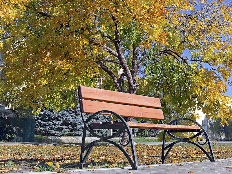 Скамейка для отдыха в осеннем парке