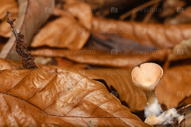 Одинокий гриб под листом