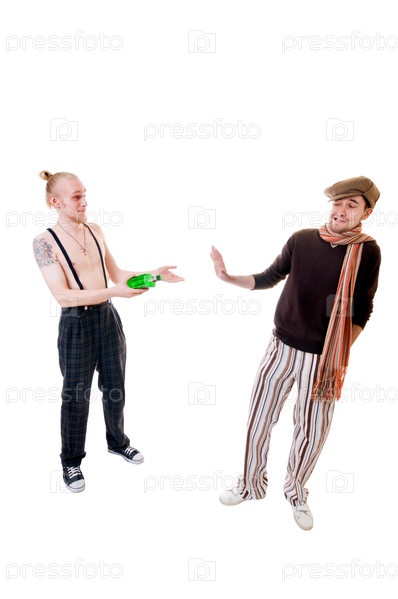 Молодые люди с бутылкой