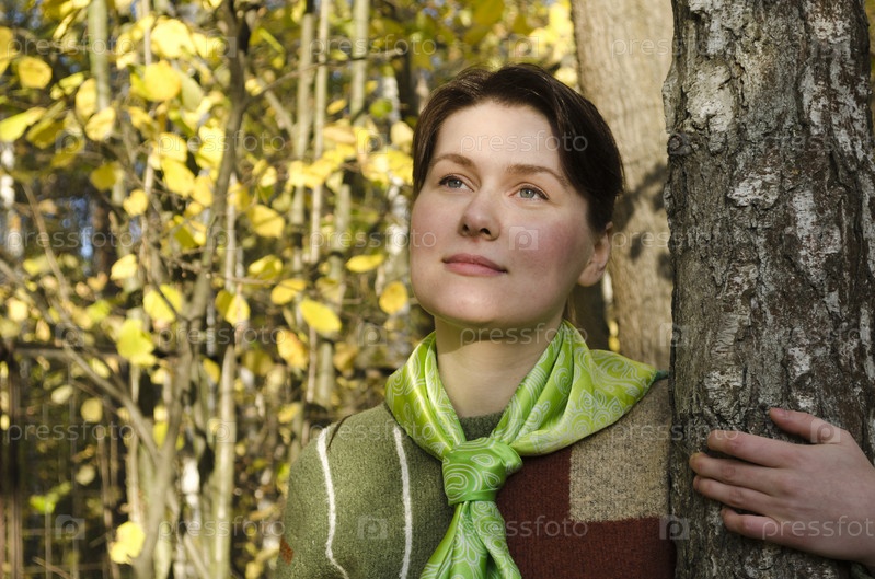 Портрет молодой женщины в осеннем лесу