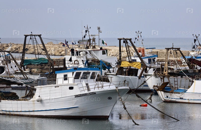 Италия, Сицилия, провинция Рагузы, сицилийские деревянные рыболовецкие суда в порту