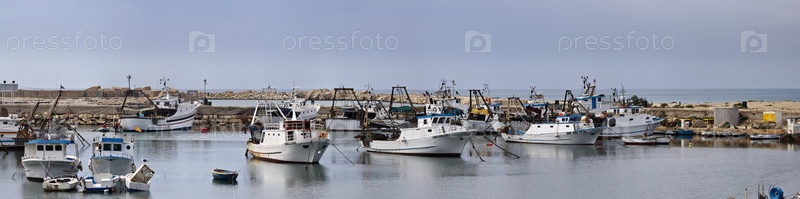 Италия, Сицилия, провинция Рагузы, сицилийские деревянные рыболовецкие суда в порту