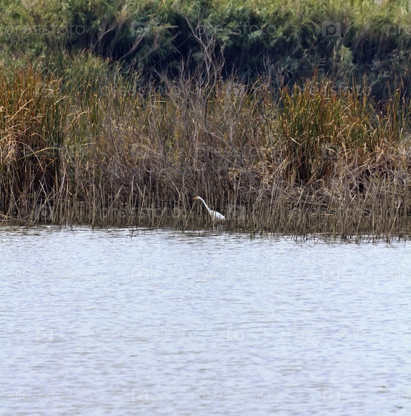 Италия, Сицилия, озеро Бивир (провинция Рагузы), большая белая цапля