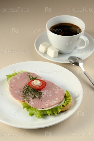 Бутерброд с ветчиной и кофе