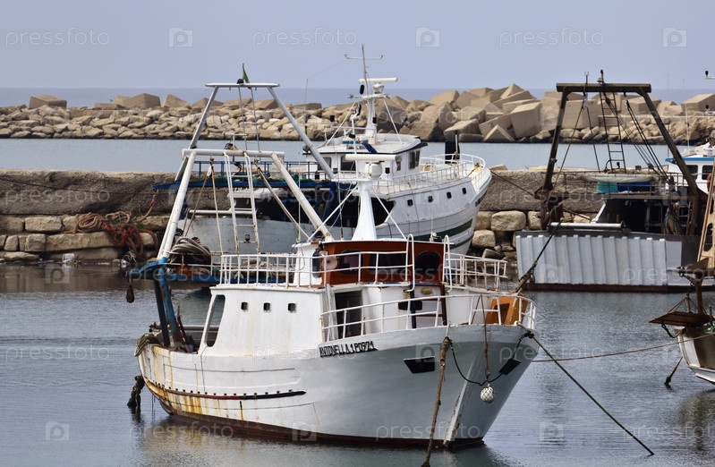 Италия, Сицилия, городе Скоглитти (провинция Рагузы), сицилийские деревянные рыболовецкие суда в порту