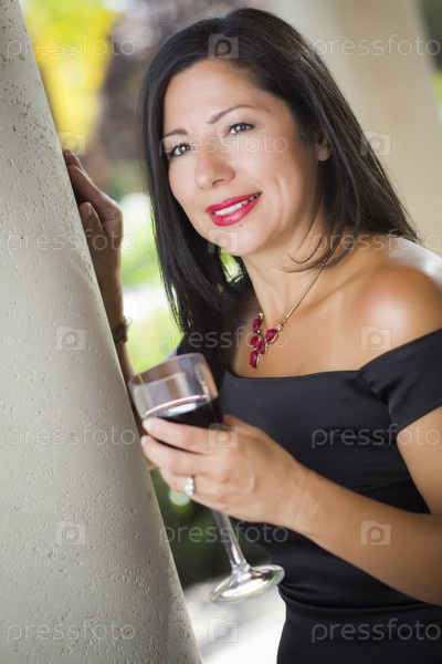 Привлекательная испанская женщина наслаждается вином