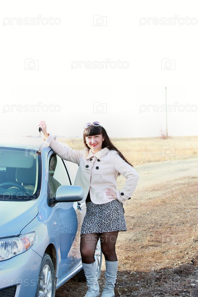 Красивая брюнетка с ключом от автомобиля